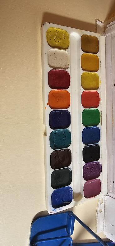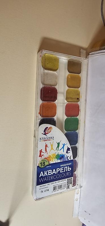 Набор акварельных красок б/у совсем немного крышечка от них не держатся по бокам сломано держатели любые 100 сом