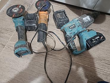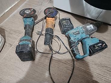 - Питание: одна УШМ — от сети 220 В; вторая УШМ и перфоратор — от аккумуляторов.