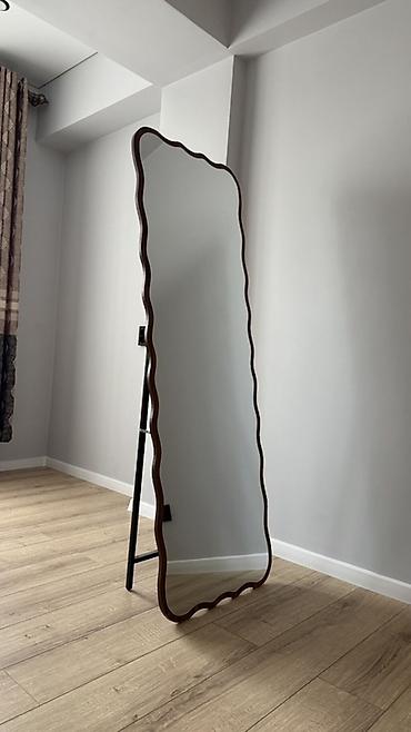 Напольное зеркало в рамке с волнистым контуром.
