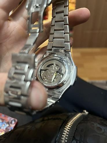 - Корпус и браслет из нержавеющей стали, сочетание сатинированных и полированных граней.
