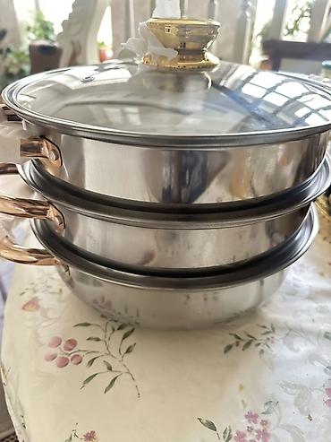 Пароварка из нержавеющей стали, 3 яруса - Материал: пищевая