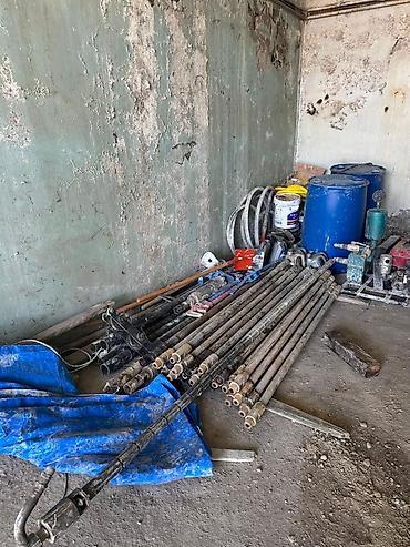 - Шланги, емкости для промывочной жидкости (синие бочки), вспомогательный инструмент.