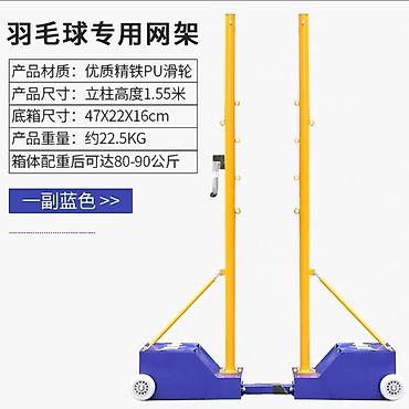 - Конструкция: пара металлических стоек на утяжелённых тележках с колёсами для легкого перемещения; растяжки для жёсткости, точки крепления шнуров/сетей по высоте.