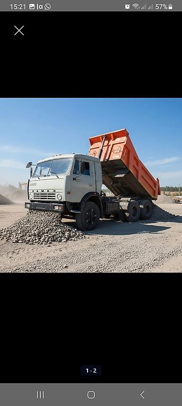 - Доставка самосвалом КАМАЗ (трехосный), разгрузка задняя/боковая, выгрузка кучей или распределением по площадке.