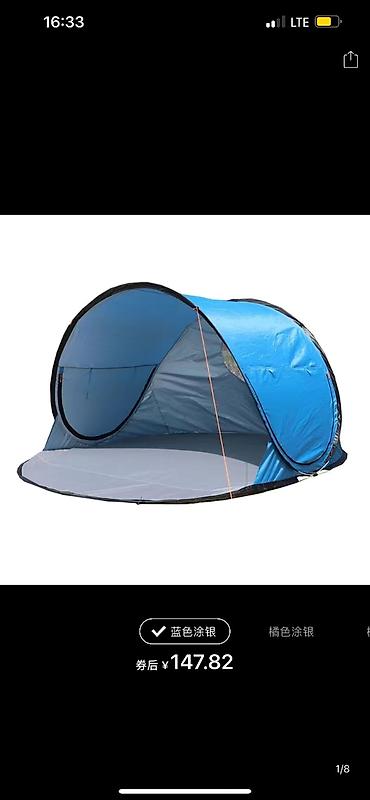 Пляжная/кемпинговая палатка быстрого раскрытия (pop-up), цвет синий с серебристым покрытием.