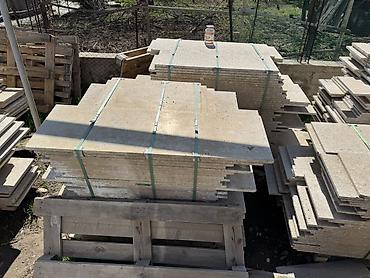 Плиты из натурального камня (известняк/ракушечник), распиленные в форматные элементы для облицовки и благоустройства.