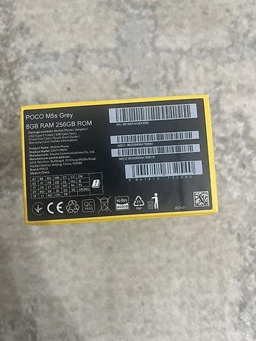 Телефон без сарапин идеальный10/10 POCO M5s, серый цвет. Память: 8 ГБ ОЗУ + 256 ГБ встроенной (скрин «О телефоне» и коробка). Процессор: MediaTek Helio G95, 8 ядер до 2.05 ГГц. Экран с вырезом под фронтальную камеру. MIUI Global 14.0.17 (для POCO) на базе Android 13; патч безопасности от 01.12.2024. На скрине видно: занято 46.5 ГБ из 256 ГБ.
