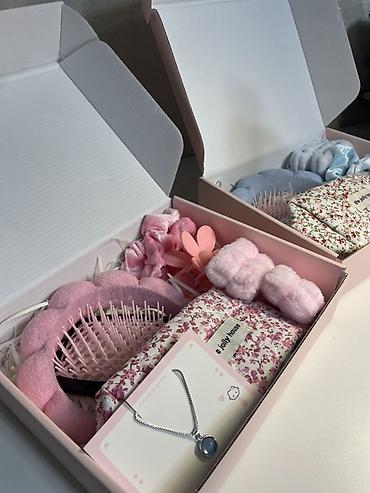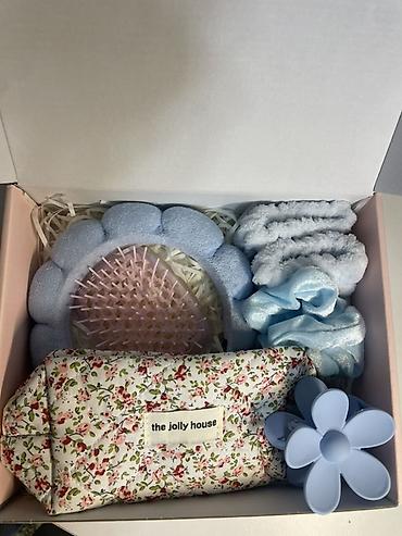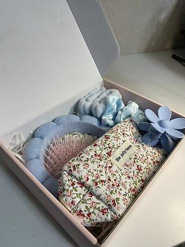 - Голубой бокс: с голубыми аксессуарами (скранчи, краб‑заколка, ободок)