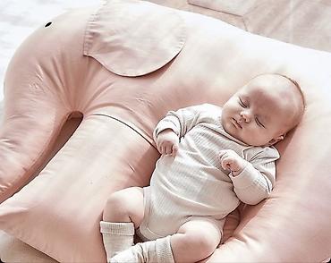 - Форма U/слон: углубление по центру мягко фиксирует тело, высокие бортики создают уютное пространство; «хобот» служит дополнительной опорой.