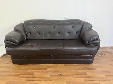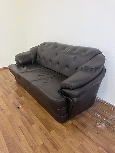 Прямой раскладной трехместный диван с мягкими подлокотниками. - Дизайн: классическтй темно-коричневый. - Габариты ориентировочно: длина около 2,0 - Материалы: тканевая обивка Дополнительно: свобо...
