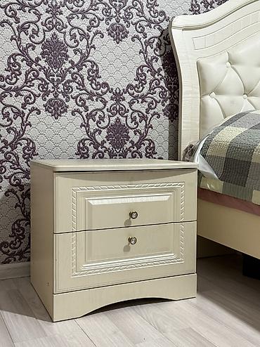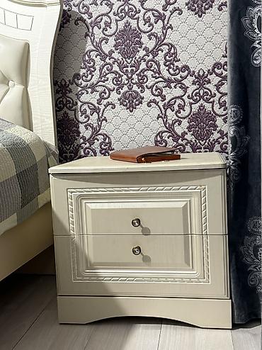 Спальный гарнитур в современном стиле, глянец белый. Состав комплекта: - Кровать двуспальная с высоким изголовьем, корпус в белом глянце. Основание под матрас и матрас на фото входят. - Прикроватн...