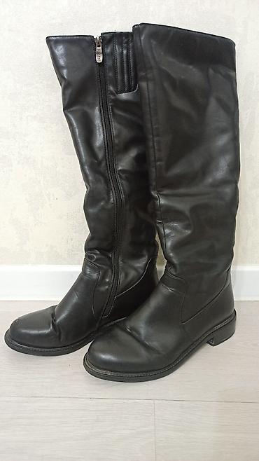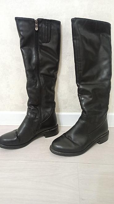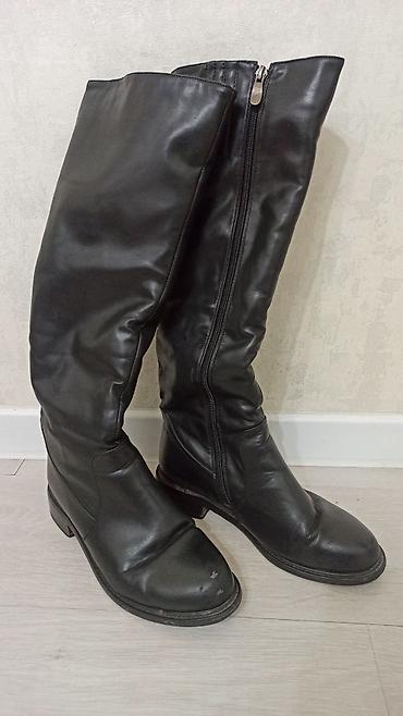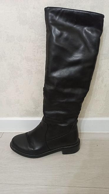 Высокие женские сапоги-чулки выше колена, черные. - Материал верха: гладкая экокожа. - Силуэт: облегающий голенище, аккуратный округлый мыс. - Застежка: вертикальная молния сзади с длинным язычком...