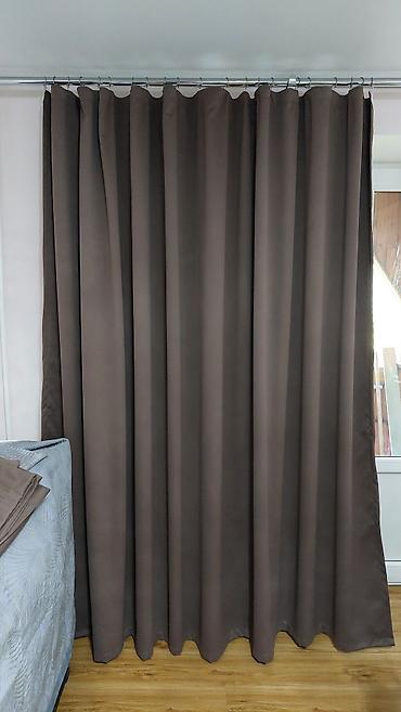 Комплект штор (портьер) готовый, б/у в хорошем состоянии, бежевый цвет, подойдет для комнаты высотой 2,80 см. Стоимость 4500 сом.