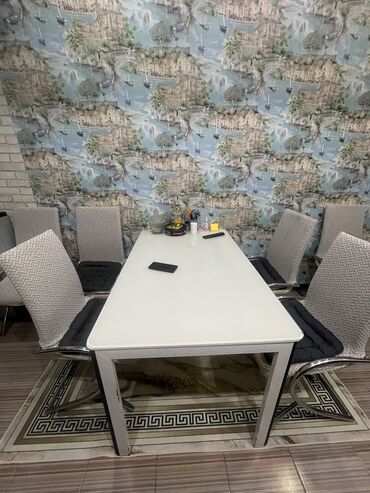 • Стол: белый, прямоугольный, устойчивый, в хорошем состоянии