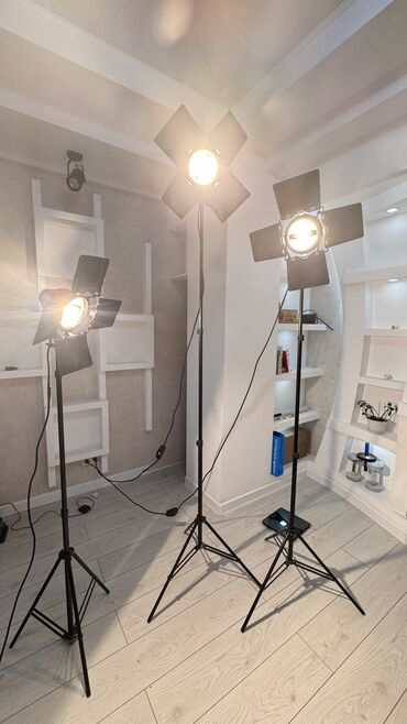 Продам комплект из трех мощных светильников по 800 Вт каждый с регулируемыми флагами (барndoors) для точного контроля света. Отлично подойдут для создания яркого, ровного и мягкого света в фотостудии, на съемочной площадке или для контент-креаторов.