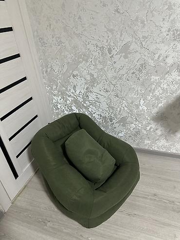 Мягкое кресло-пуф с подушкой, темно-зеленый цвет.