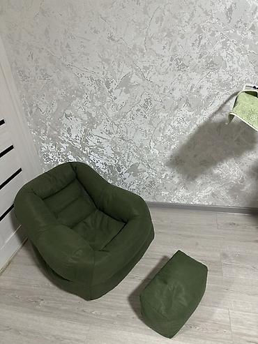 Пуфик Мягкое кресло-пуф с подушкой, темно-зеленый цвет. - Формат