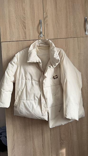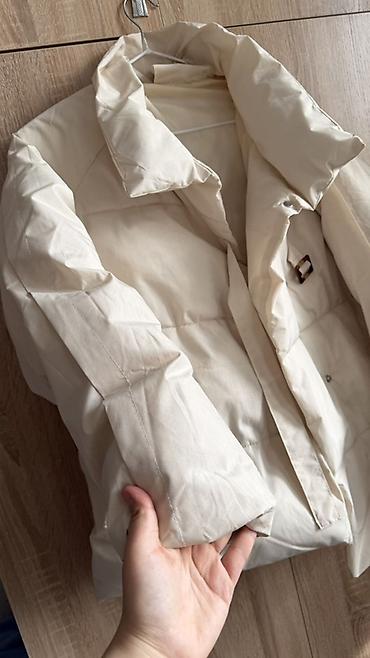 Теплая базовая модель для осени и мягкой зимы: хорошо держит форму, не продувается, сочетается с джинсами и брюками. Цвет универсальный — молочный/айвори. Размер ориентировочно S–M (оверсайз на S, по фигуре на M).