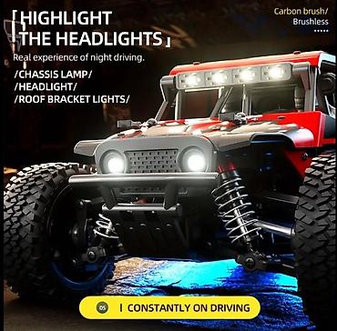 - Яркая LED‑подсветка: фары, свет балки на крыше и подсветка шасси для реалистичных ночных заездов