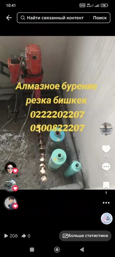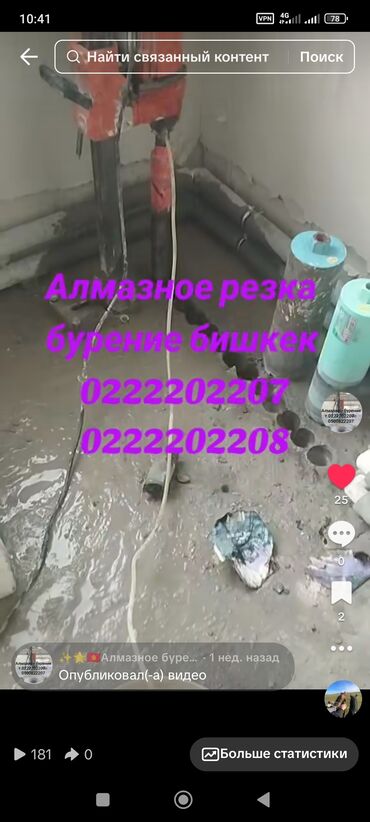 Алмазное бурение | Алмазная резка | Канатная резка | Демонтаж | Резка асфальта В нашей бригаде работают самые опытные специалисты. Занимаемся алмазной резкой и бурением бетона. Режем проёмы под д...