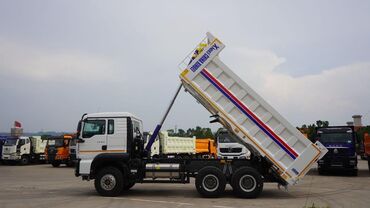 Самосвал 6x4, красная кабина, черный кузов.Абалы жакшы,жумушка даяар, алмашуу карап коробуз,ойноп сурап чалбагыла Основные характеристики: - Конфигурация: трехосный самосвал, задняя разгрузка. - П...