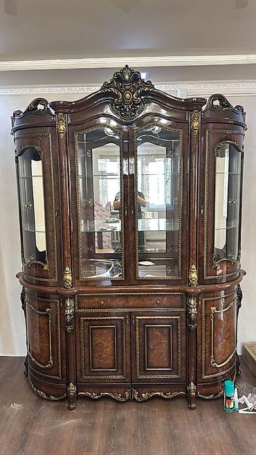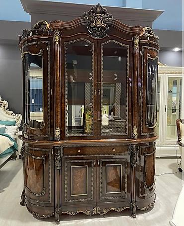 Витрина/сервант классический, массивный, с богатым резным декором. Производство Дубай, из натурального дерева полностью. - Материал: дерево (фасады с резьбой и накладками под бронзу), стеклянные д...