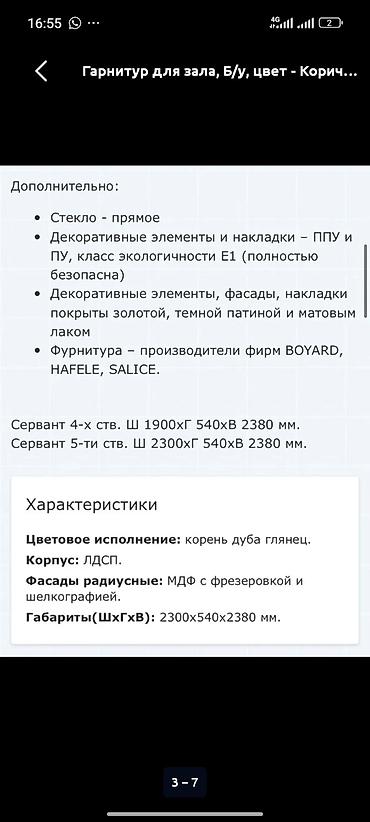 Сервант. С зеркалом внутри. Длина 150, ширина 42, высота 174 Особенности и состав: - Верхняя часть: два застеклённых шкафа-витрины с распашными дверцами и декоративной раскладкой; рядом — глухой ш...