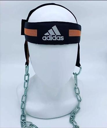 - Конструкция: мягкая регулируемая шапочка-ремень, усиленные прошивкой ленты, металлические кольца и прочная стальная цепь для навешивания утяжелений (блины, гиря и т.п.).