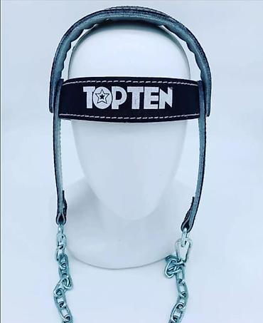 Использование: закрепить ремень на голове, пристегнуть груз к цепи, выполнять подъёмы/наклоны головы вперёд-назад и в стороны контролируя амплитуду.