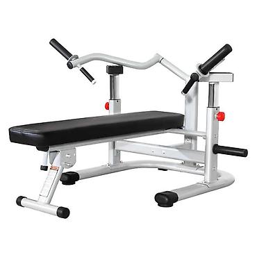 - Жим лежа: прямая скамья; жим под углом вверх: регулируемый наклон спинки.