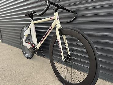 Фикс jixf велосипед с трековой геометрией и прямой вилкой. Особенности: - Рама и вилка: алюминий, жёсткая вилка, внутренняя прокладка тормозного троса спереди. - Колёса: 700C, высокие аэродиски (п...