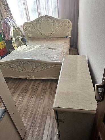 Спальный гарнитур, Б/у, Двуспальная кровать, Трюмо, Тумба, Италия, Самовывоз, цвет - Бежевый