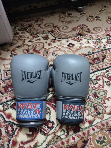Отдам весь набор за 800 сом (в подарок отдам бинты , и спортивную сумку , по желанию могу отдать и борцовки для бокса/кикбоксинга (синий цвет): - Защитный шлем Everlast: закрытая лобная часть, толс...