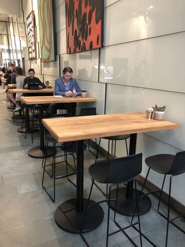 Кафейные/ресторанные столы с массивной столешницей и металлическим основанием