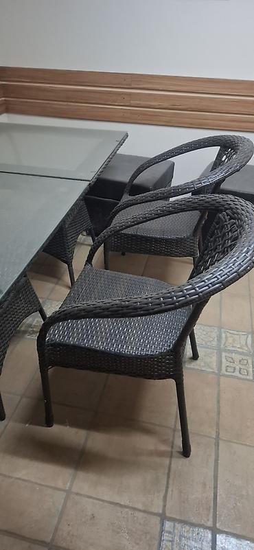 Продаются б/у плетенные столы со стульями . стол - 15шт, стульями - 60 шт. Производственный холодильник, мясорубка. Цена договорная