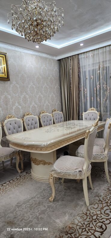 Размеры на фото ориентировочные: стол рассчитан на большую комнату; стулья стандартной высоты для обеденной зоны. Дата на фото: 22 ноября 2025 г., 10:02 PM.
