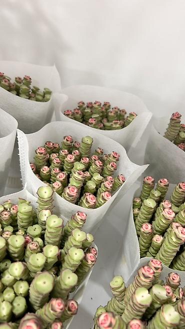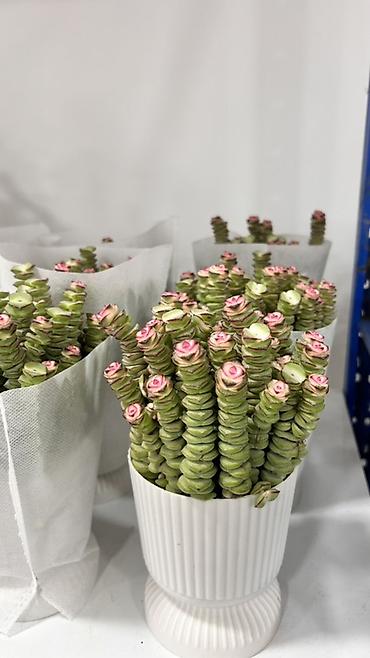 - Редкий архитектурный суккулент с плотными вертикальными стеблями, сформированными из плотно прилегающих листьев-«чешуек». Верхушки с розово‑кремовым оттенком напоминают миниатюрные розетки.