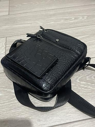 Сумка через плечо с тиснением “под крокодила”, черная.