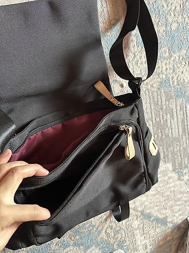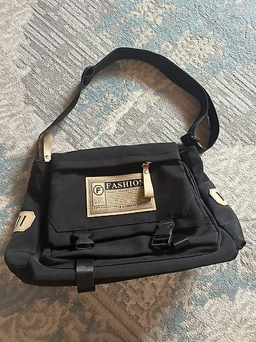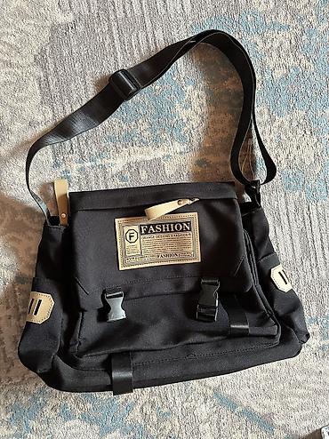 Сумка-мессенджер через плечо, черная. - Материал: плотная ткань