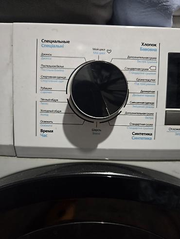 - Программы: хлопок (дополнительная/стандартная сушка, под утюг, деликатная), синтетика, смешанная одежда, джинсы, постельное бельё, спортивная одежда, рубашки