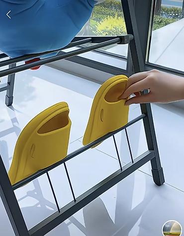 - Полка‑держатель для обуви внизу: сушка кроссовок, тапочек и детской обуви.