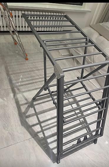- Трёхуровенная конструкция: верхняя плоскость для раскладки, боковые перекладины и нижние ярусы для дополнительной сушки.