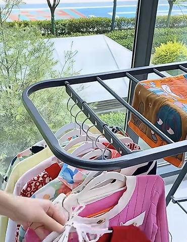 - Встроенные «антиветровые» элементы: фиксаторы для плечиков удерживают одежду на сквозняке.