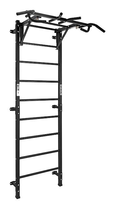Шведская стенка с многофункциональным турником и разборной скамьей/брусьями для дома.