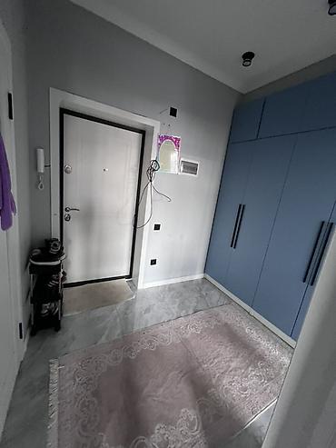 - Прихожая: встроенный шкаф-купе во всю стену с матовыми синими фасадами и длинными ручками, видеодомофон.