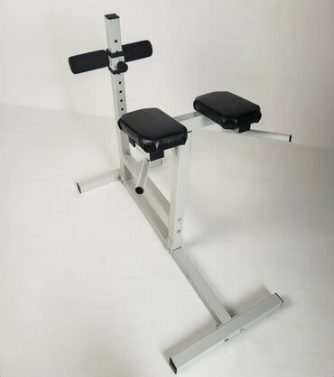 - Конструкция: напольная рама с широкой опорой, регулируемая по высоте стойка с мягким валиком для фиксации ног/голеней, две анатомические подушки под таз/бедра, упорные ручки по бокам.