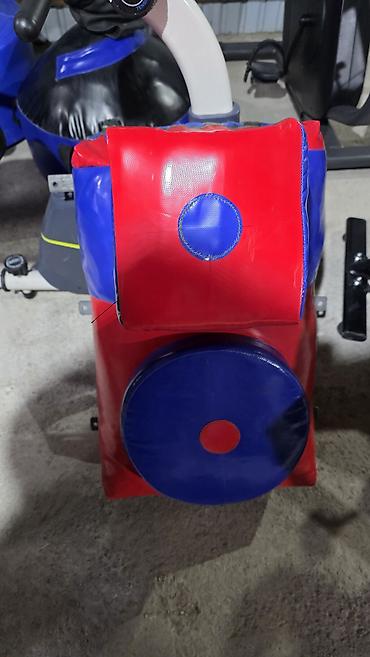 - Материалы: износостойкий ПВХ-винил красно‑синего цвета, плотный наполнитель, прошитые швы; круглая мишень на молнии — доступ к наполнителю для регулировки жесткости.
