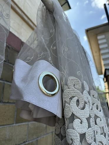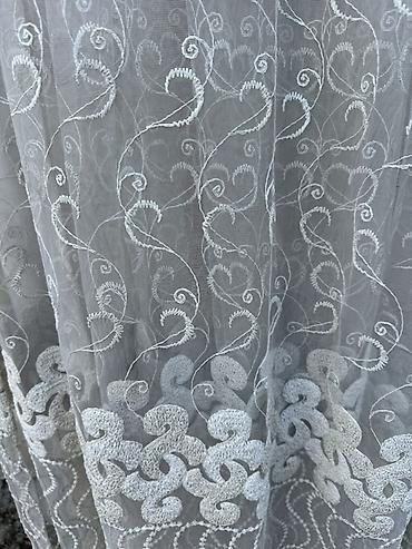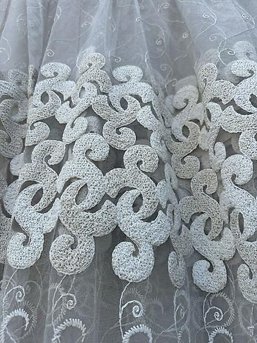 - Материал: сетка‑тюль с машинной вышивкой (легко драпируется, пропускает свет).