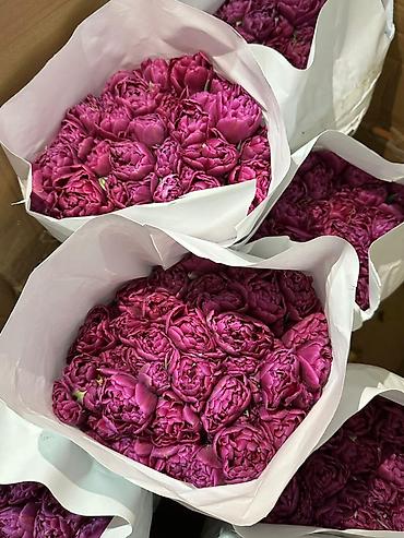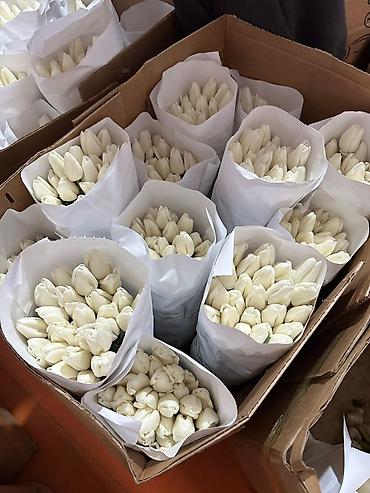 - Упаковки по несколько десятков стеблей в белой бумаге, уложены в картонные коробки с разделителями.