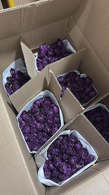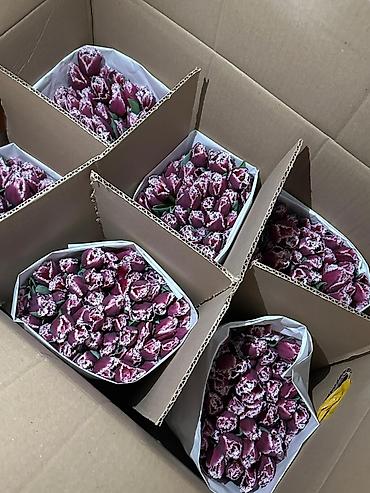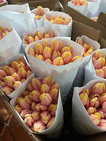 Тюльпаны срезанные, букетами в крафтовых обёртках. Ассортимент: -